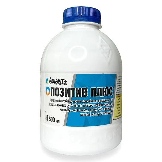 Гербіцид Позитив Плюс – це універсальний довсходовий гербіцид, призначений для захисту сільськогосподарських культур від однорічних та багаторічних бур'янів.