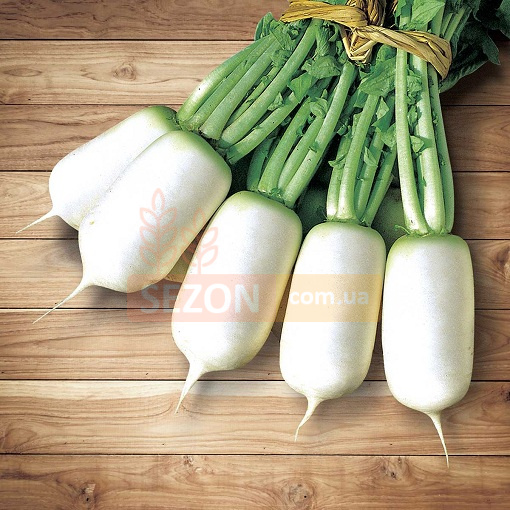 Високоврожайний гібрид редьки типу дайкон, що відрізняється чудовими смаковими якостями. Коренеплоди однорідні, вирівняні, білого кольору. М'якуш білий, соковитий і хрумкий, без гострого присмаку. Рекомендований для свіжого споживання та для нетривалого зберігання.