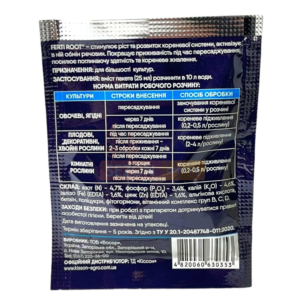 Ferti Root® – інноваційний регулятор росту, призначений для прискореного укорінення рослин, підвищення їхньої приживлюваності та активного розвитку кореневої системи. У складі препарату містяться альгінова кислота, бетаїн, фітогормони та вітаміни, які стимулюють ріст нових коренів і сприяють кращому засвоєнню вологи та поживних речовин. Ferti Root® ідеально підходить для овочевих, плодових і ягідних культур, декоративних дерев і кімнатних рослин, забезпечуючи швидкий і здоровий ріст.