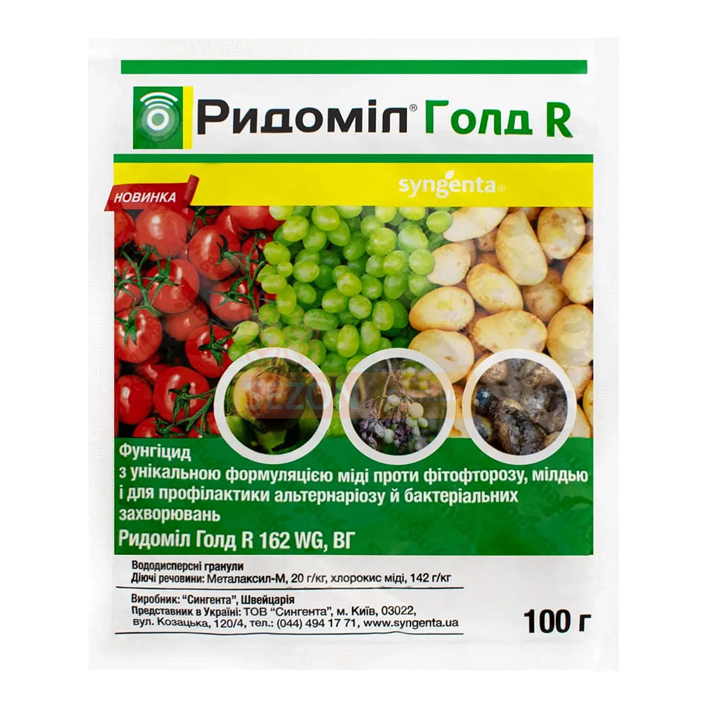 Фунгіцид Ридоміл Голд R надає надійний захист від таких захворювань, як фітофтороз, альтернаріоз та мілдью. Препарат застосовується для захисту винограду, картоплі, томатів та інших культур. Він ефективний за будь-яких погодних умов і має тривалий захисний ефект.