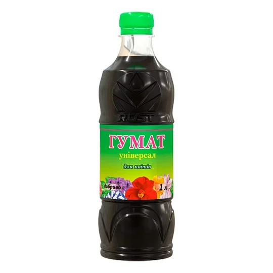 Rost® Гумат – це натуральне біологічне добриво з ефектом стимулятора росту, яке сприяє відновленню родючості ґрунту, активізує обмінні процеси в рослинах та зміцнює їхню імунну систему. У складі препарату містяться гумусові сполуки (гумати, фульвокислоти), а також макро- і мікроелементи (азот, фосфор, калій, кальцій, магній, залізо, мідь, цинк, кобальт, молібден, бор), які забезпечують комплексне живлення та стимулюють розвиток кореневої системи.