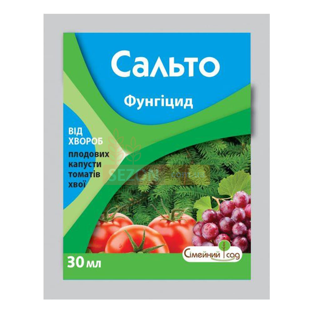 Фунгіцид Сальто застосовується для обробки хвойних та плодових дерев, чагарників, овочів та винограду. Препарат швидко проникає всередину рослини та починає діяти на збудника інфекції вже протягом першої доби. Засіб має захисну дію до трьох тижнів.