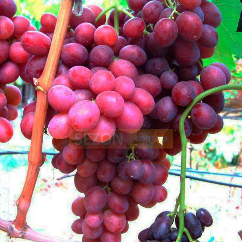 Грозди у сорта конические, средней плотности, массой 800–1000 г. Ягоды очень крупные — 12–15 г, диаметром до 30 мм, преимущественно круглые, иногда слегка овальные или приплюснутые. Окраска тёмно-розовая, с красивым пруином. Мякоть плотная, кожица тонкая и съедаемая. В ягоде содержится 1–2 косточки. Вкус выраженный, медово-цветочный.