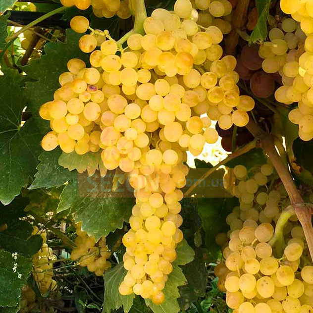 Грозди крупные, цилиндро-конической или цилиндрической формы, иногда крылатые, плотные. Ягоды средней величины, округлые, молочно-белые с лёгкими белыми полосками, что придаёт им характерный «мраморный» оттенок. Кожица прозрачная и тонкая, мякоть мясистая, хрустящая. Сорт бессемянный, поэтому особенно удобен для потребления в свежем виде и сушки.
