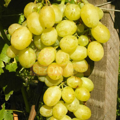 Кусты сильнорослые, лоза вызревает хорошо, приобретая коричневую окраску. Листья среднего размера, пятилопастные, сильнорассечённые, снизу со щетинистым опушением. Грозди среднего размера, конические или цилиндро-конические, массой около 270 г, средней или высокой плотности. Ягоды округлые, зеленовато-жёлтые, средней величины. Кожица тонкая, мякоть мясисто-сочная с ярким мускатным ароматом. Дегустационная оценка — 8,3 балла.
