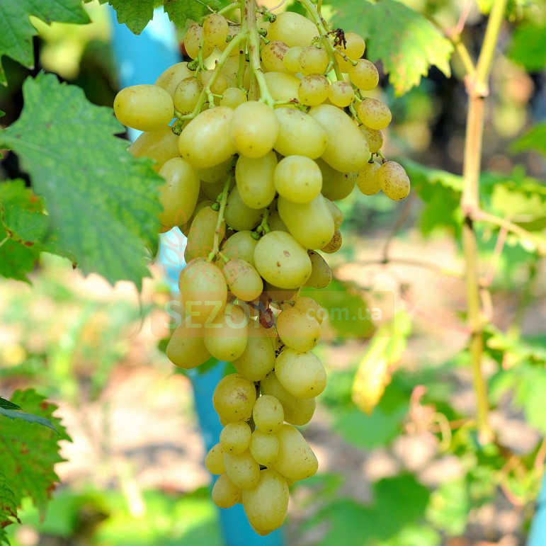Цветок обоеполый, что обеспечивает надёжное опыление. В привитой культуре грозди особенно крупные и красивые, что делает сорт востребованным на рынке. Ягоды имеют привлекательный янтарно-жёлтый цвет и гармоничный вкус с лёгким мускатным ароматом.