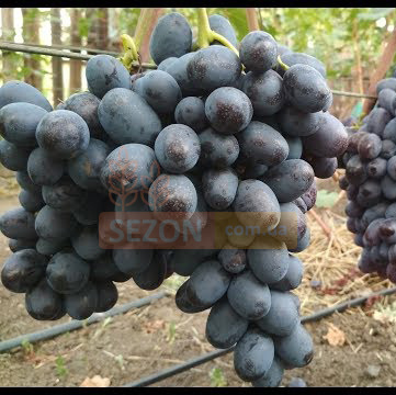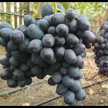 Ягода дуже велика, масою 14-18 грам, у формі барила, темно-фіолетового, при повному дозріванні майже чорного кольору. Вкрита густим пруїновим нальотом, що трохи псує картину, але з цим можна боротися. Стійка до розтріскування і не гниє. Осами не вражається. М'якуш м'ясисто-соковитий, приємного гармонійного смаку, проскакують фруктові тони.