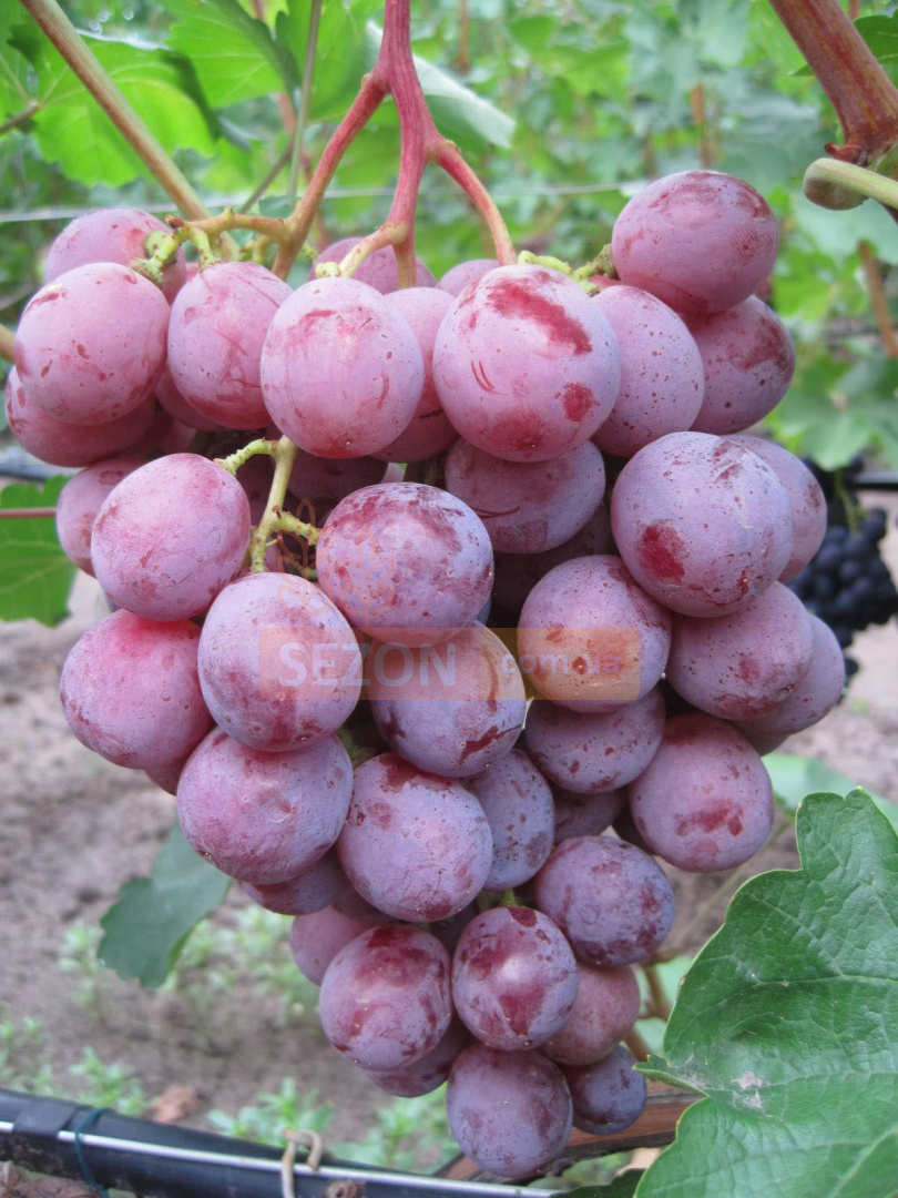 Грозди крупные, средней плотности, массой 600–700 г. Ягоды розовые, овальные, массой около 12 г, сочные, с гармоничным вкусом. Отличаются высоким содержанием сахаров и привлекательным товарным видом.