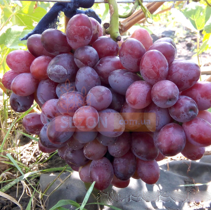 Виноград отличается раннесредним сроком созревания (125–130 дней), гроздями массой до 1,5 кг и ягодами весом 18–20 г. Форма ягод овальная, цвет насыщенно-розовый до тёмно-красного. Мякоть мясистая, с мармеладной текстурой и гармоничным вкусом. Сорт не склонен к горошению и устойчив к растрескиванию, что делает его удобным для выращивания и транспортировки.