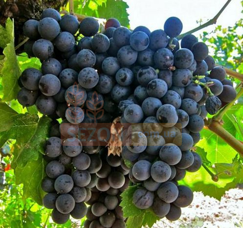 Грозди средние и крупные, масса варьируется от 600 до 1500 г, в отдельных случаях достигает 3–5 кг. Форма гроздей цилиндроконическая, средней плотности или рыхлая. Ягоды крупные, весом 6–8 г (иногда до 12 г), овальные, с насыщенно-черной окраской и приятным вкусом.