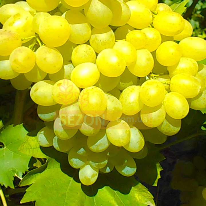 Ягода: масою 5-7 г, овальна, жовта. М'якуш хрумкий, щільний, шкірка тонка, гармонійного смаку. Клас безнасінності I-II.