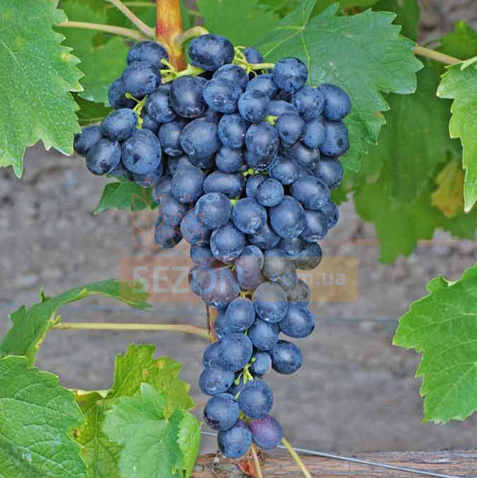 Кусты среднерослые, с обоеполыми цветками, что обеспечивает стабильное опыление. Грозди цилиндро-конической формы, средней рыхлости, массой 200–500 г. Ягоды овальные, весом 4–7 г, окрашены в красный или насыщенный розовый цвет, при полном созревании становятся тёмно-синими. Мякоть мясисто-сочная, вкус гармоничный с лёгким мускатным ароматом. Кожица плотная, что повышает транспортабельность и защищает ягоды от растрескивания.