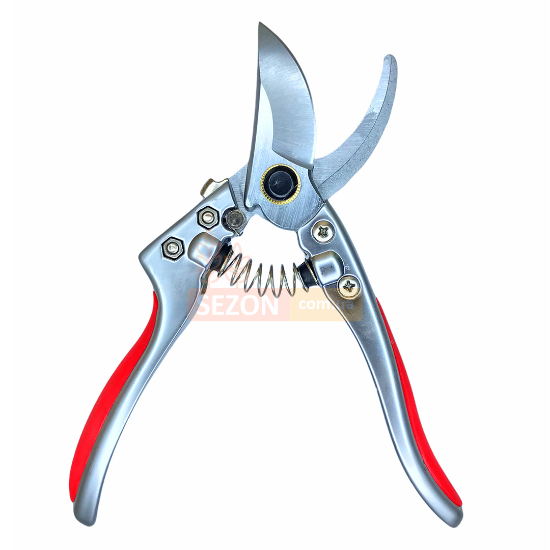 Секатор садовый Japan Quality №2 оснащен цилиндрической пружиной с амортизатором и специальным замочком у лезвий, позволяющий с легкостью его открыть при нажатии на ручки.