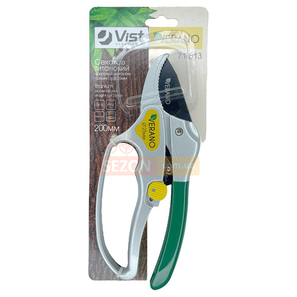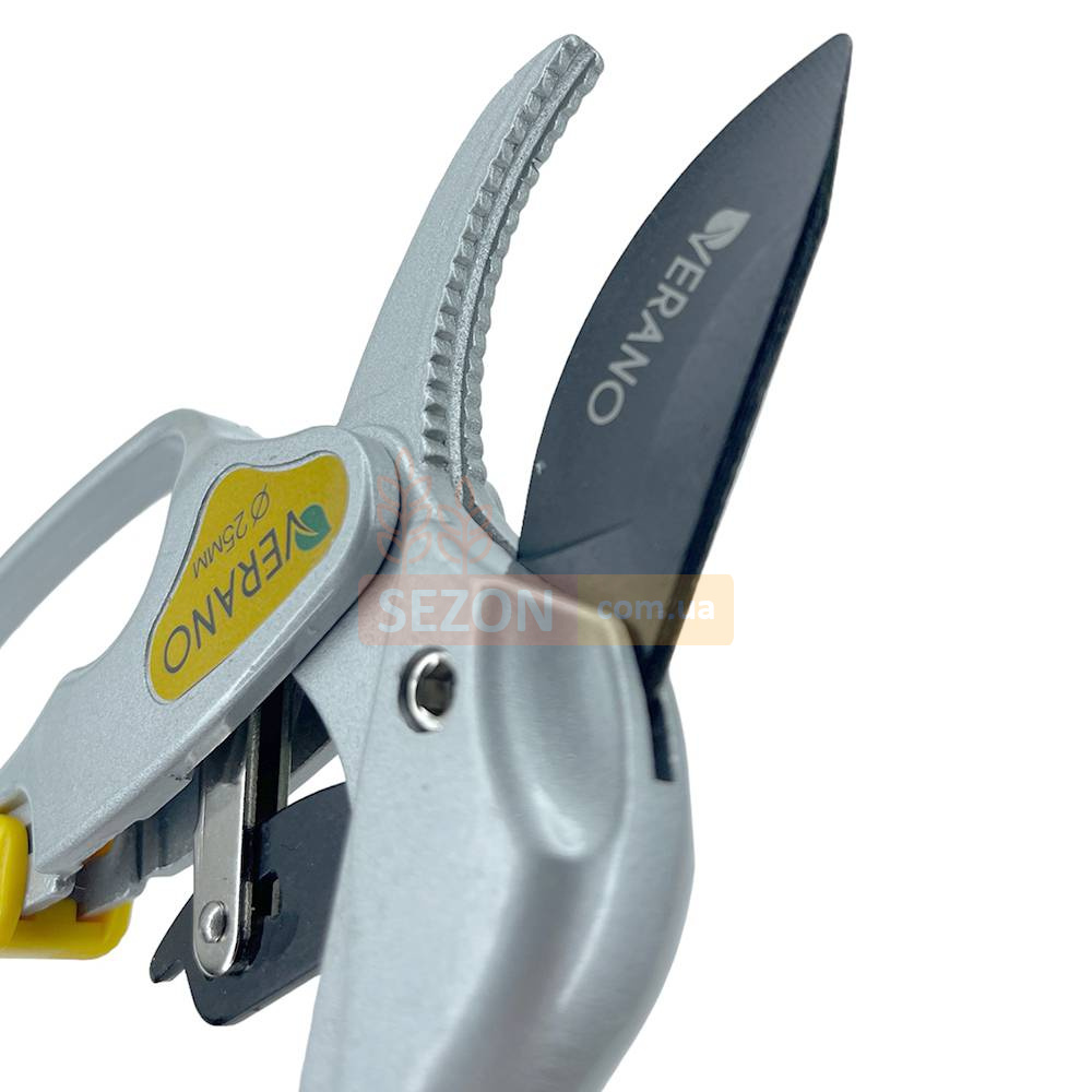 Секатор Verano 71-813 подходит как для правшей, так и для левшей, благодаря своей универсальной конструкции. Надежный фиксатор гарантирует безопасность при хранении и транспортировке инструмента.