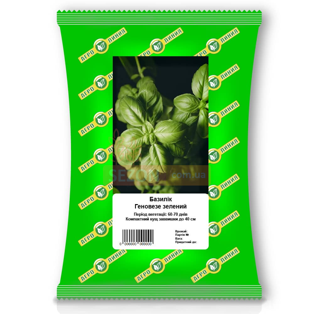 Базилік Геновезе (Genovese) – вишуканий середньостиглий сорт з неповторним ароматом і м'яким смаком. Цей базилік прекрасно адаптується для вирощування у відкритому та закритому ґрунті, а також підходить для балконних грядок. Сорт відзначається невибагливістю та стійкістю до посухи і хвороб, що дозволяє отримувати свіжу зелень навіть при мінімальному догляді.
