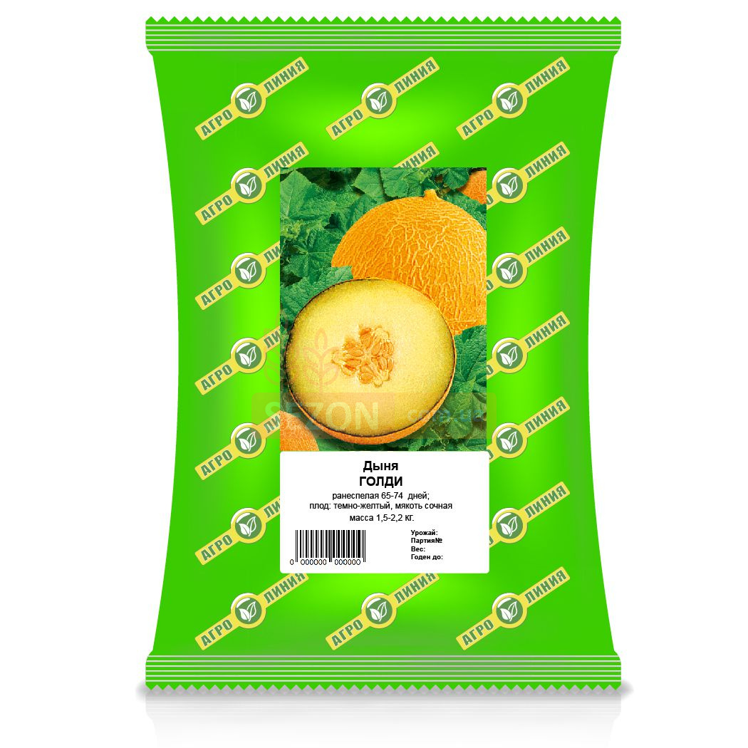 Дыня Голди — среднеранний сорт типа Ананас, созданный для выращивания в открытом и защищённом грунте. Созревает через 65–70 дней после высадки рассады. Растение мощное, с длинными стеблями и густой листвой, формирует 3–5 плодов. Отличается неприхотливостью к условиям, пластичностью к агротехнике и устойчивостью к грибковым и бактериальным заболеваниям.
