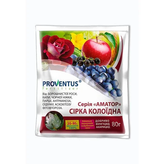 Сера коллоидная садовая предназначена для защиты садовых, овощных и декоративных культур от грибковых болезней и растительноядных клещей. Используется как профилактическое средство и для лечения уже поражённых растений.