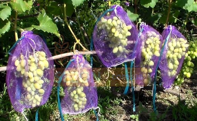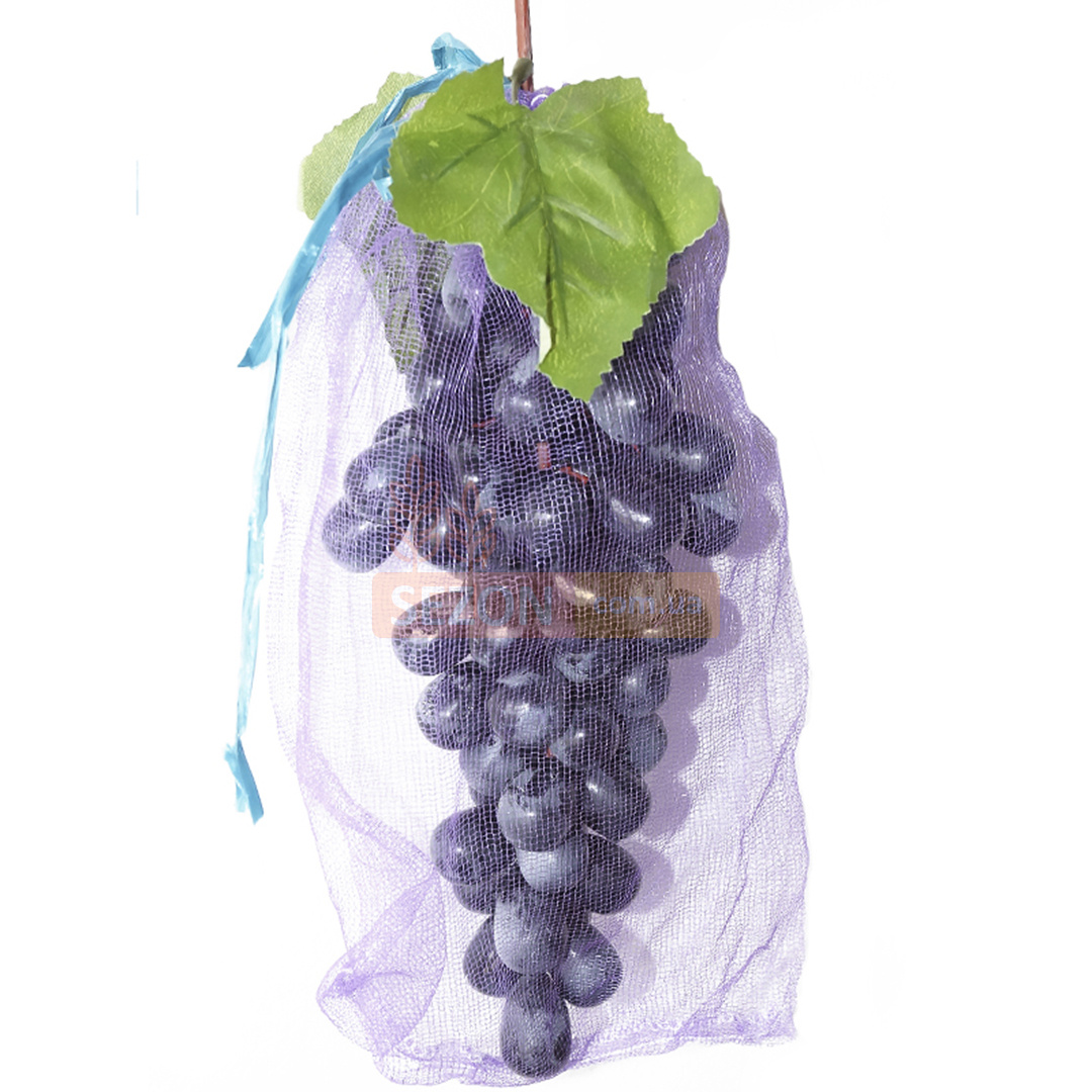 Виноградна сітка для захисту ягід від ос та інших шкідників. Виготовлена з якісних та міцних матеріалів у вигляді мішечка, який затягується спеціальним шнурком. Випускається в різних кольорах та у двох розмірах: 22х28см (місткість 2 кг), та 28х40 см (місткість 5 кг). Підходить для багаторазового використання. Чи не рветься і не пересихає під впливом сонячного світла. Швидко висихає після дощу та не прилипає до ягод, на відміну від марлевих сіток.
