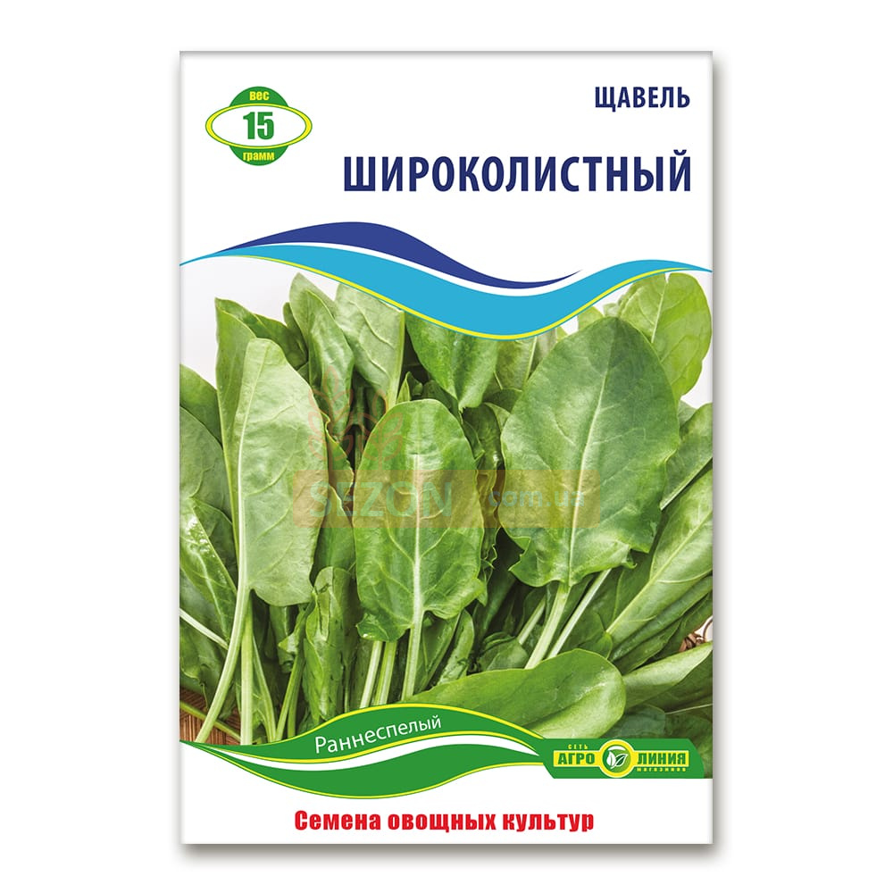 Щавель Широколистий – це ранньостиглий, морозо- та посухостійкий сорт, ідеально підходить для висаджування у відкритий ґрунт навесні, влітку або під зиму. Період від появи сходів до технічної стиглості становить 40–45 днів.