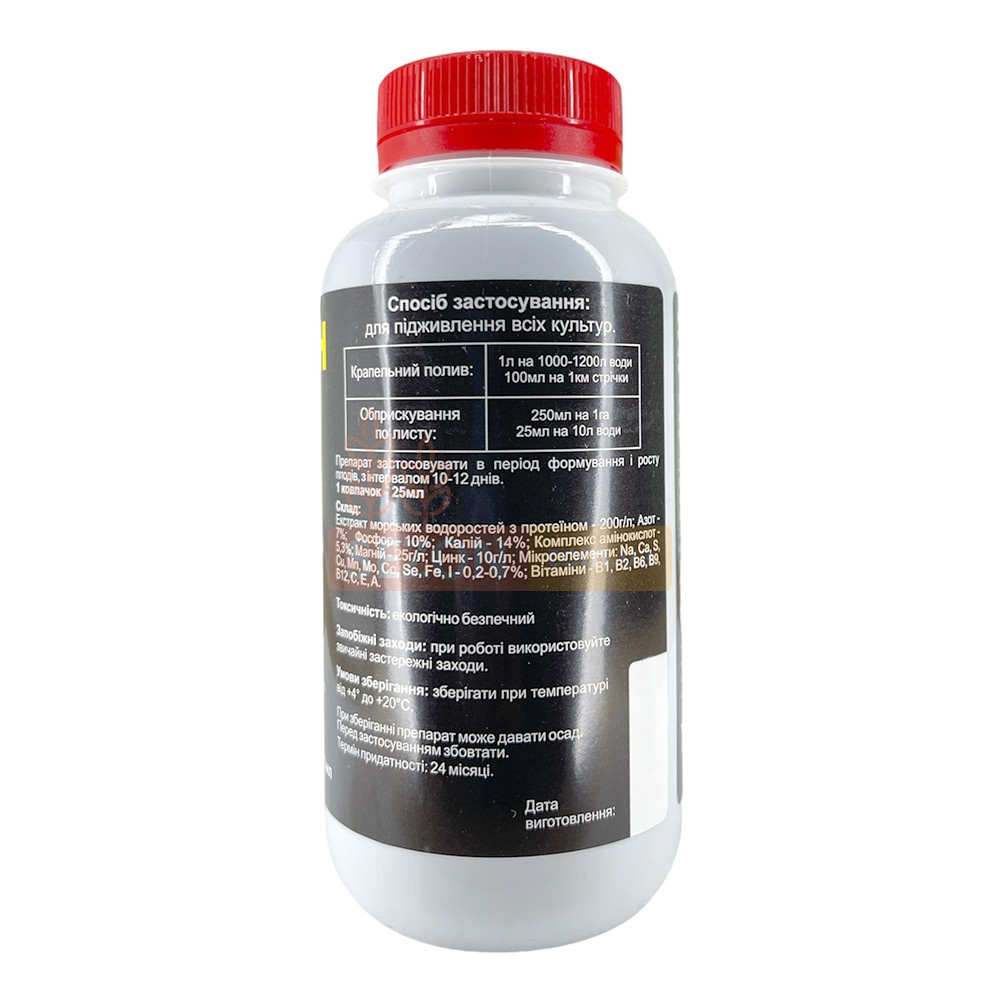 Використовується шляхом краплинного поливу або обприскування по листу, з інтервалом 10-12 днів. У складі містяться амінокислоти, мікро- та макроелементи, а також корисні речовини, що сприяють активному росту та захисту рослин від хвороб.