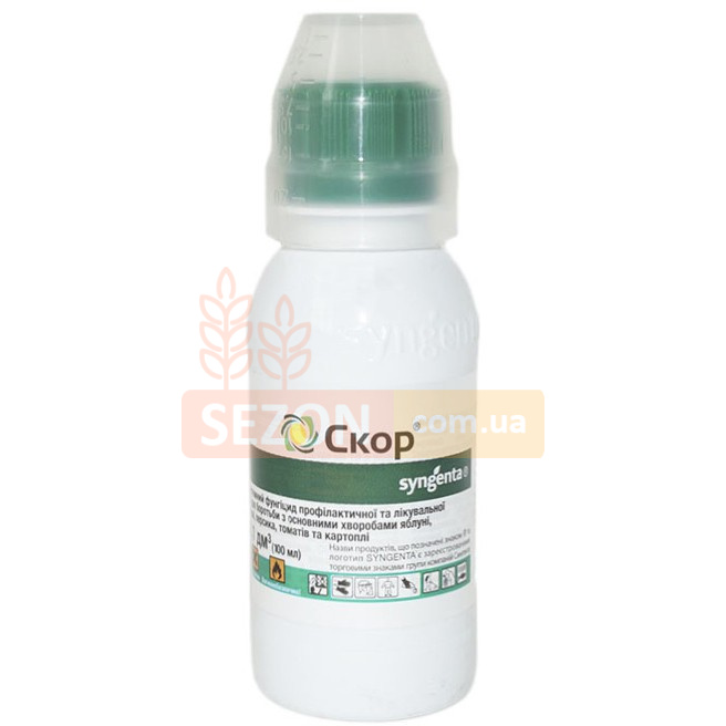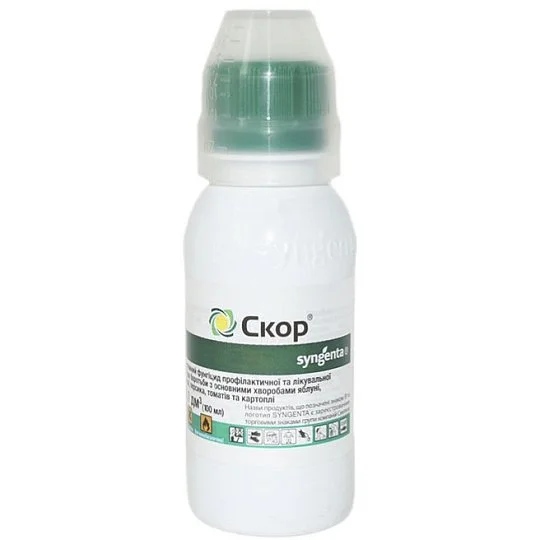 Фунгіцид Скор ефективно захищає яблуні, груші, картоплю, томати та персики від грибкових та бактеріальних захворювань. Він допомагає збільшити врожай, поліпшити якість плодів та зберегти їх товарний вигляд. Препарат активний в несприятливих погодних умовах та забезпечує тривалий захист протягом 30 днів.