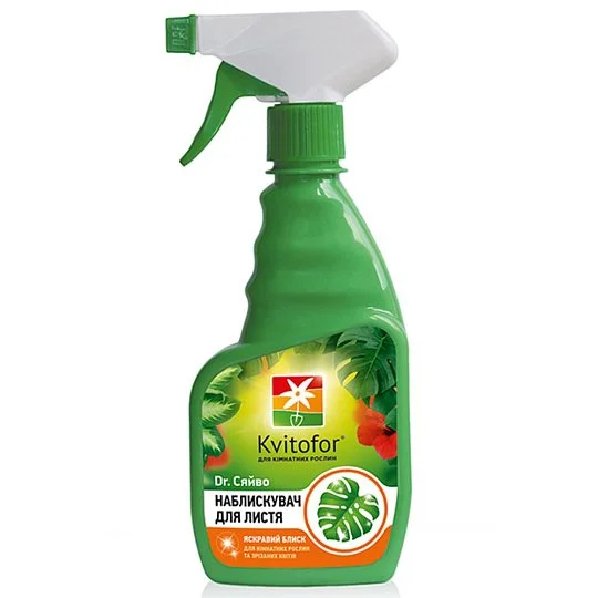 Dr. Сяйво — це спеціальний засіб, що надає листям природного глянцевого блиску, захищає від пилу та підкреслює декоративні якості рослин. Ідеально підходить для використання як на кімнатних рослинах із жорстким або шкірястим листям, так і на зрізаній зелені в складі букетів.