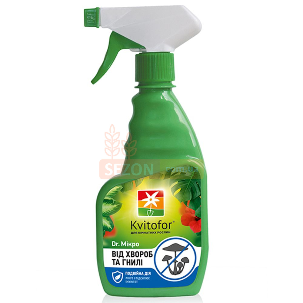 Dr. Мікро подвійної дії — це універсальний засіб, що поєднує властивості добрива і фунгіцидної обробки. Препарат призначений для лікування та профілактики широкого спектра грибкових захворювань, включаючи білу гниль, антракноз, борошнисту росу, мілдью, фітофтороз, іржу, плямистість та інші ураження, характерні для кімнатних і садових рослин.