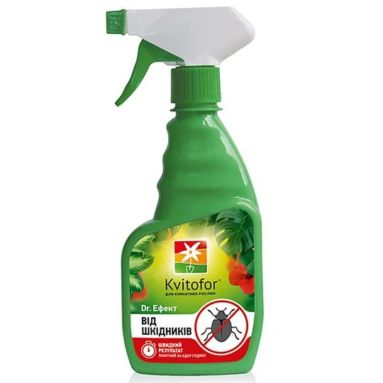 Dr. Ефект — це комплексний препарат, що поєднує властивості добрива та інсектоакарициду. Засіб ефективно бореться з широким спектром шкідників кімнатних і садових рослин: попелиця, білокрилка, павутинний кліщ, щитівка, борошнистий червець, совка, довгоносик, вуховертка, клоп, цикадка, гусінь та інші.
