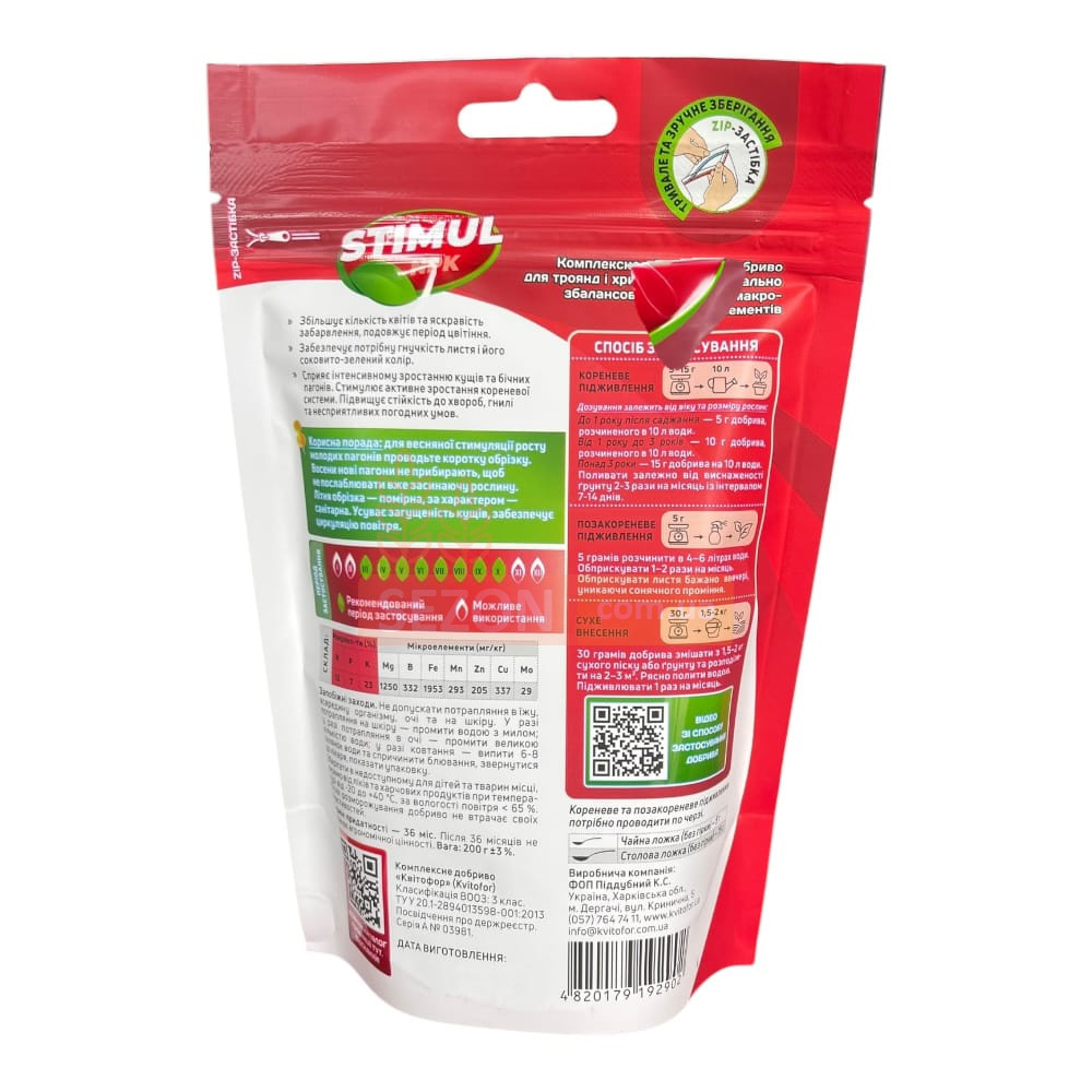 Минеральное удобрение с высоким содержанием калия и сбалансированными макро- и микроэлементами предназначено для питания роз, хризантем и других декоративных кустарников. Оно усиливает рост побегов, стимулирует цветение и укрепляет иммунитет растений.