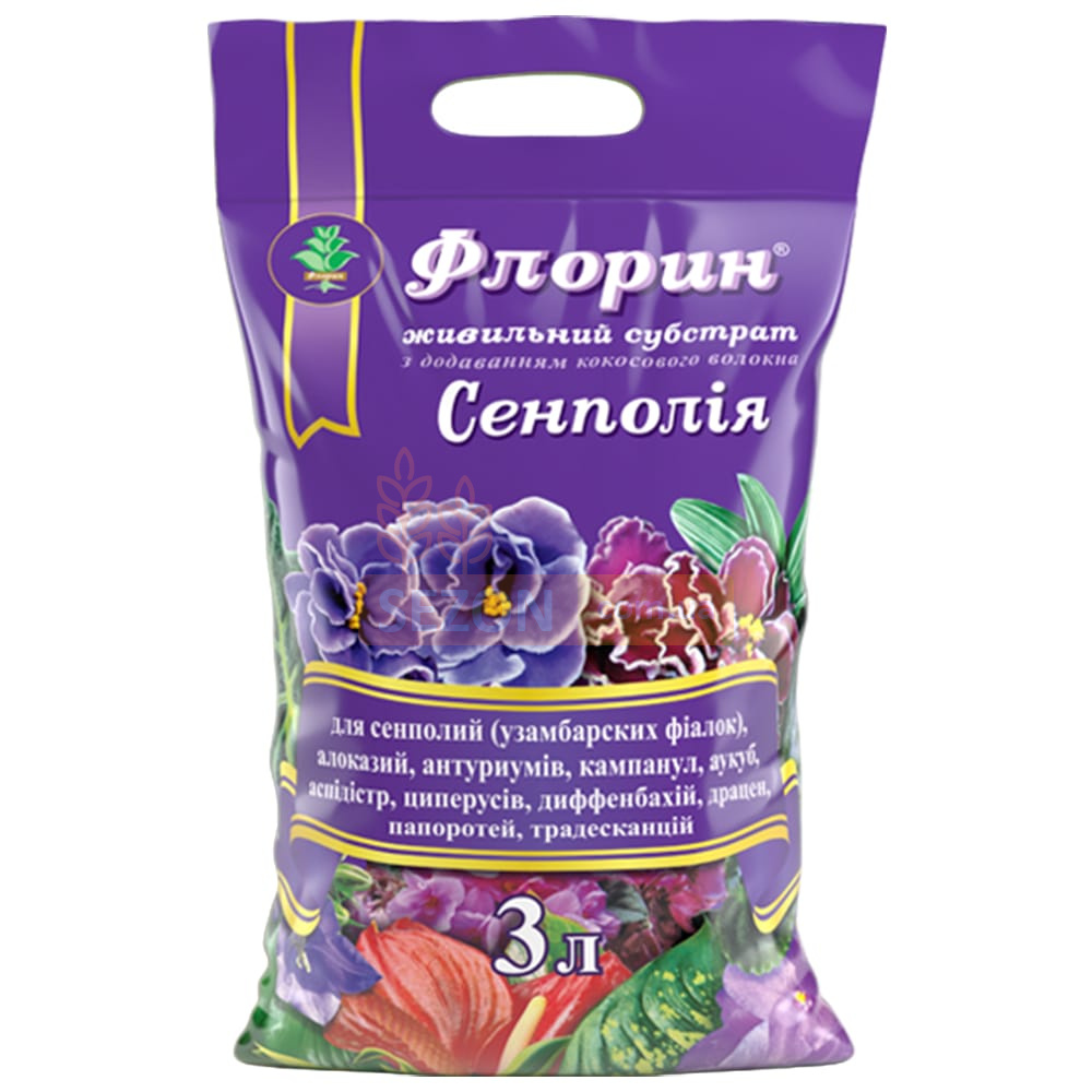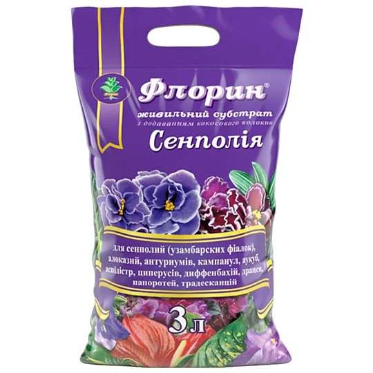 Флорин® – це поживний субстрат, спеціально розроблений для сенполій, алоказій, антуріумів, папоротей, аспідістр, драцен та інших декоративних рослин. Збалансований склад суміші містить торф, кокосове волокно, перліт, пісок і органічні добавки, що забезпечує оптимальну структуру ґрунту для росту та розвитку рослин.