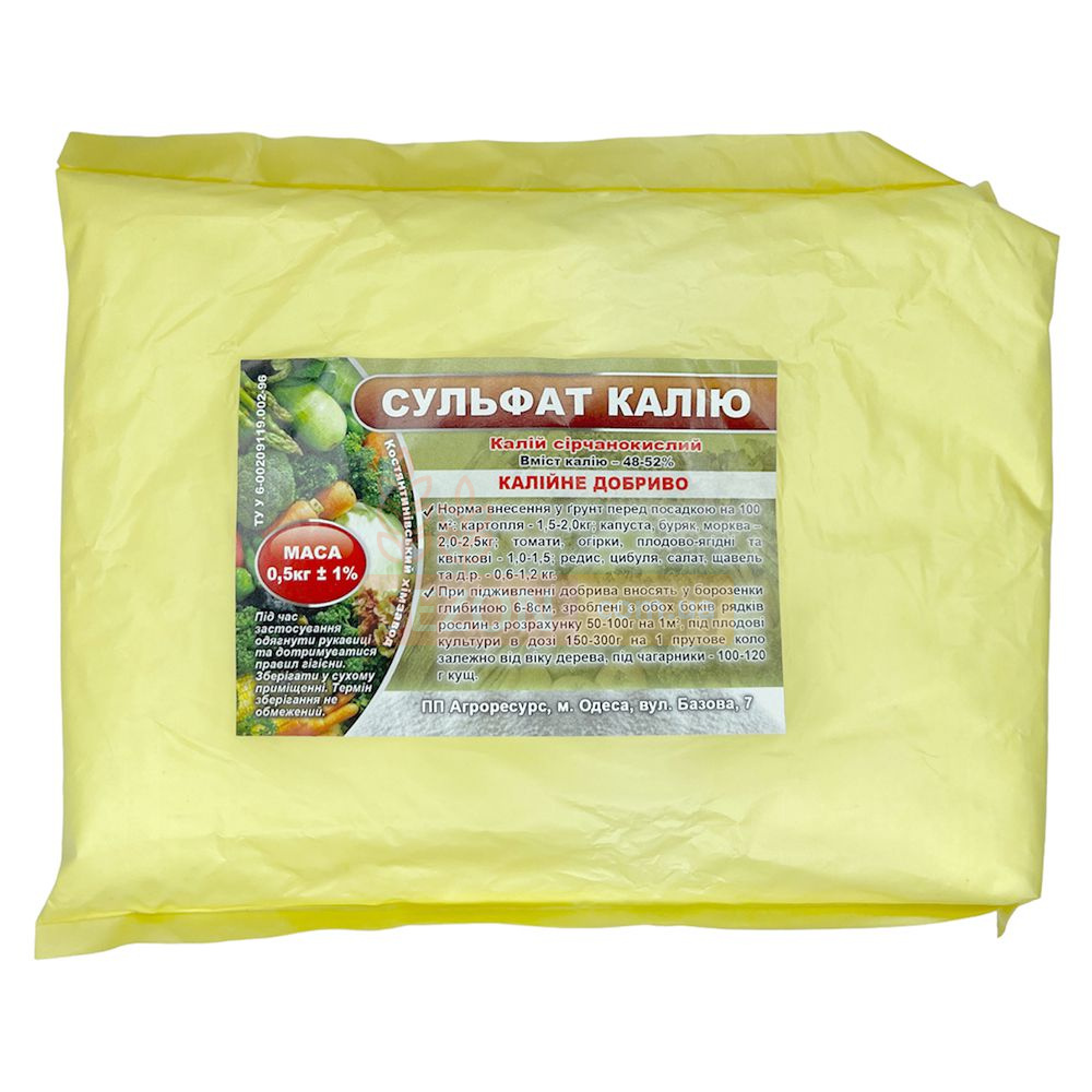 Сульфат калію — це універсальне і безпечне добриво, яке забезпечує рослини повноцінним живленням, зміцнює їх і допомагає отримувати багатий урожай високої якості.