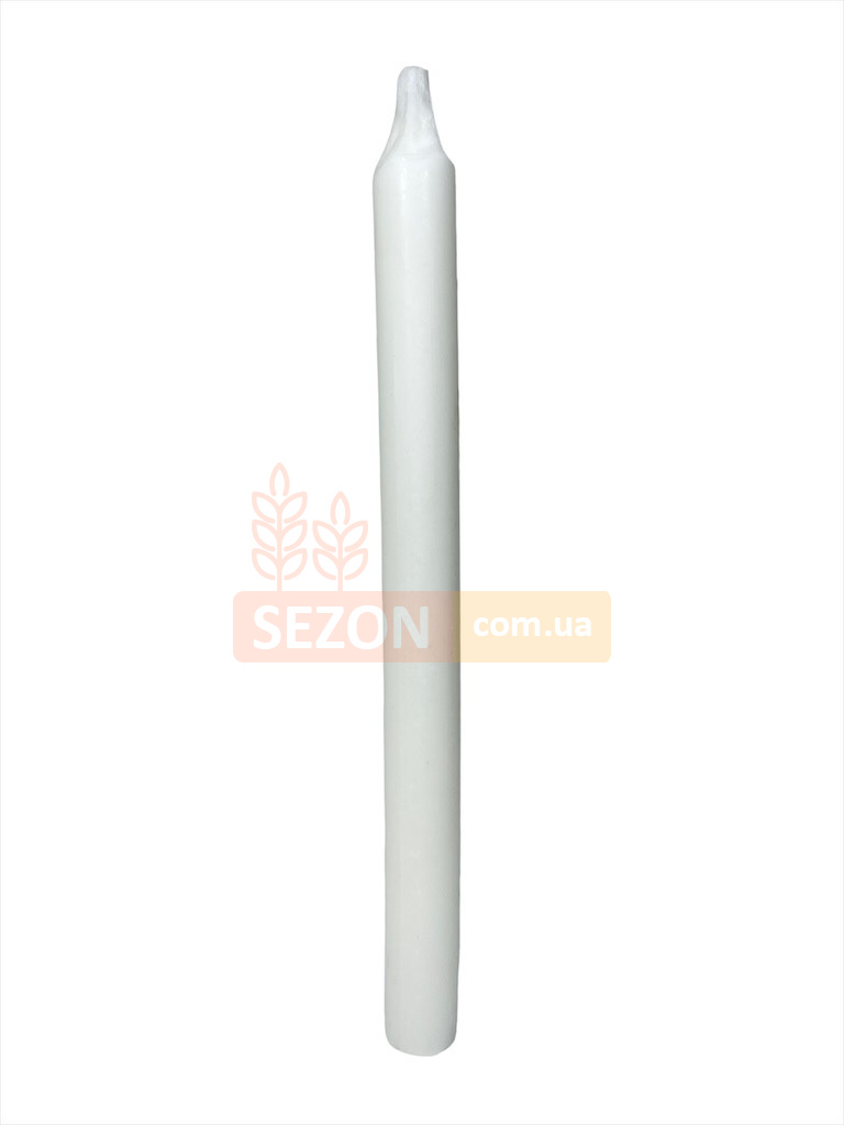 Столовая парафиновая свеча белого цвета. Время горения — до 6 часов (зависит от условий). Производитель — Украина. Подходит для сервировки, декора и повседневного использования.