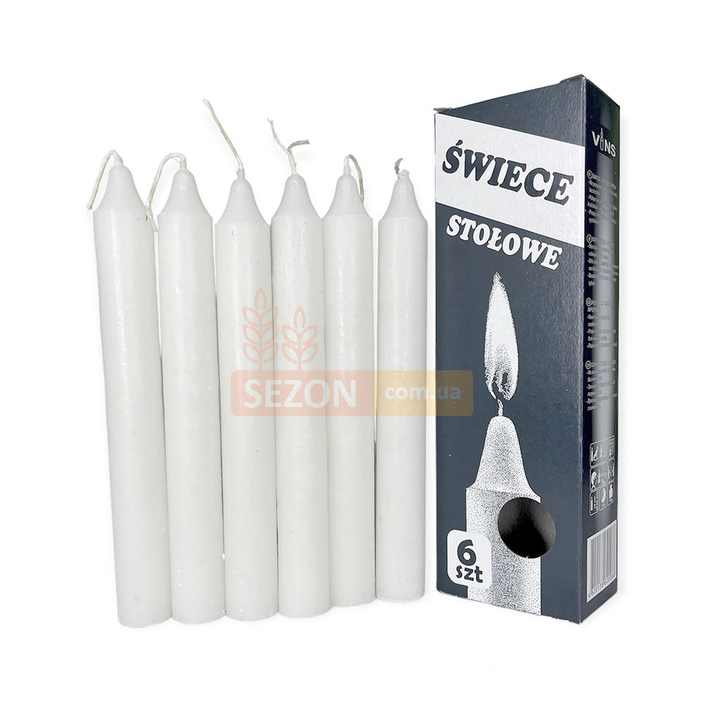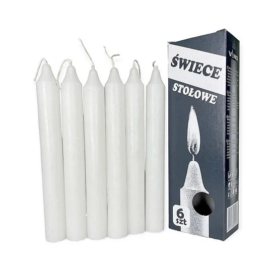 Свічки парафінові, столові - свічки, зроблені з непідфарбованого парафіну високого очищення, не забруднюють навколишнє середовище, без запаху, мають просту циліндричну форму та білий напівпрозорий колір. Найпростіший поширений вид свічок.