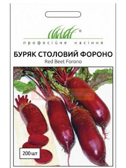 Буряк столовий Фороно має високу врожайність, чудовий на смак. Коренеплід циліндричної форми, темно-червоного кольору. Сорт Фороно пізнього терміну дозрівання. Відмінно підходить для зберігання. Кількість насіння за 1г: 50-70 шт. Термін вегетації: 125 днів.