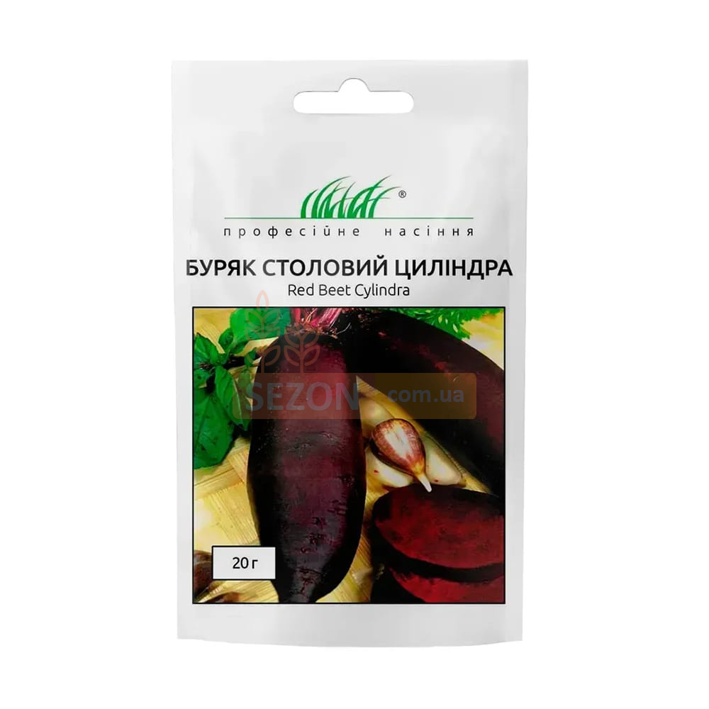 Циліндра - сорт столового буряка середнього терміну дозрівання. Коренеплоди циліндричної форми, без білих радіальних кілець, темно-червоного кольору, із соковитим та солодким смаком. Добре зберігається. Ідеально підходить для консервування та споживання у свіжому вигляді. Кількість насіння за 1 г: 50-70 шт. Розмір плода: 15-20 см. Термін вегетації: 50-75 днів.