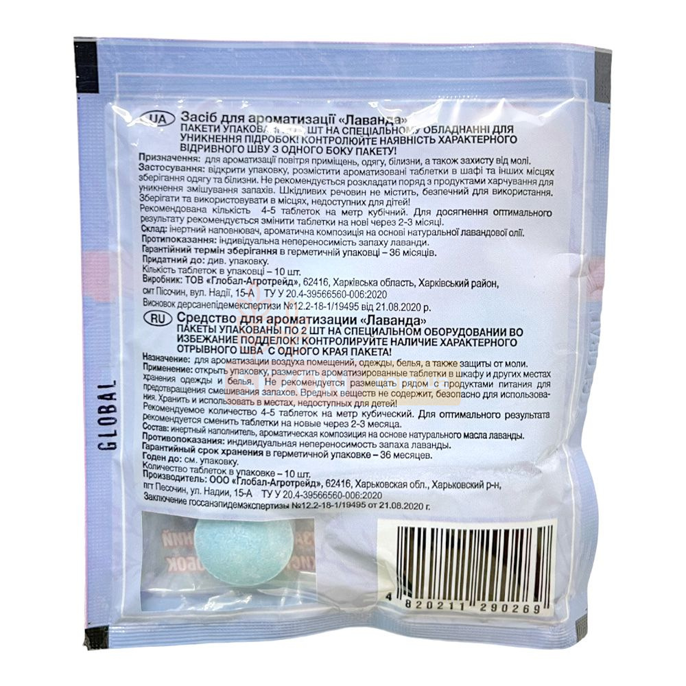 Препарат проти молі у формі таблеток із ароматом. Ефективний і природно чистий засіб для боротьби з міллю, який має приємний свіжий запах і антисептичні властивості. Зазначається, що ці таблетки не викликають стійкості у комах і швидко знищують їх завдяки привабливому запаху, а також забезпечують довгостроковий захист.