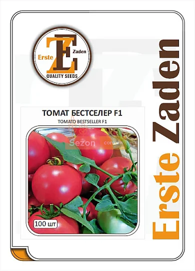 Кущ детермінантний, з гарною кореневою системою, середньолистяний, у висоту виростає до 50 см. На кожній китиці формується до 5-6 плодів. Середня вага - 200-220 р. Форма округла. Колір овочів яскраво-рожевий. Смак кисло-солодкий, ніжний. Соковита м'якоть чудово поєднується з іншими інгредієнтами у салатах. Купити насіння томатів "Бестселер F1" можна в інтернет-магазині Sezon.