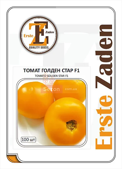 Кущ детермінантного типу зростання з дуже розвиненою кореневою системою. Томати еліпсоподібної форми, важать від 250 до 300 г. Поверхня золотисто-жовта, серцевина трохи блідніша. М'якуш м'ясистий, не водянистий, з хорошим ароматом і солодким смаком. Камерність майже непомітна. Великий вміст сухих речовин, цукрів та бета-каротину. Гарно виглядають у нарізках та салатах. Купити насіння томатів «Голден Стар F1» можна в інтернет-магазині Sezon.com.ua.