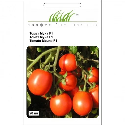 Муна F1 – ранньостиглий гібрид детермінантного томату. Формує кубовидно-округлі, ароматні плоди з високим вмістом сухих речовин. Кущ не потребує пасинкування. Муна Ф1 чудово підходять для консервування та переробки. Вегетаційний період: 80-100 днів. Вид: кущовий.