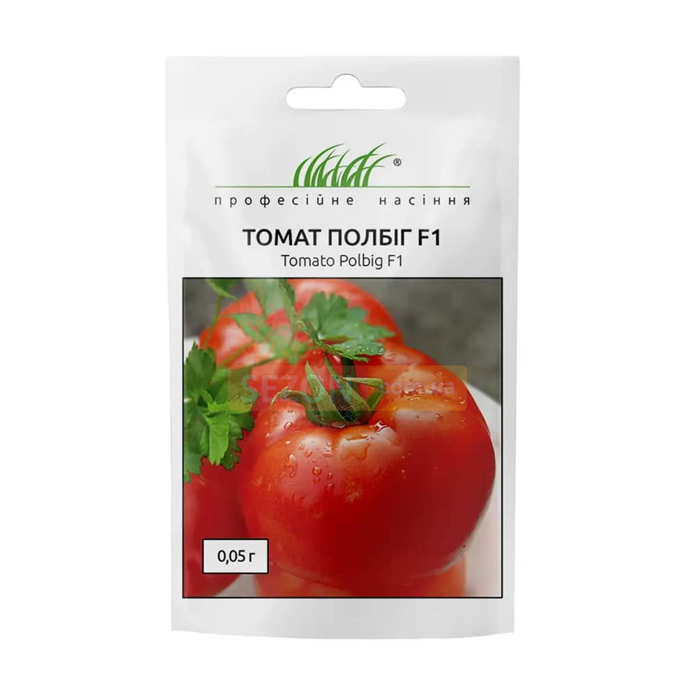 Томат Полбіг F1 - великоплідний гібрид підходить для вирощування у відкритому ґрунті, має високу врожайність. Період вегетації – 70 днів. Формує компактний детермінантний кущ. Плоди круглої форми, однорідного червоного кольору, вагою до 250 г, мають гарні смакові якості, транспортабельні. Рослина стійка до різних видів захворювання.