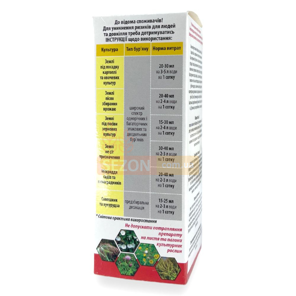 | Діюча речовина: | Ізопропіламінна сіль гліфосату, 480 г/л |