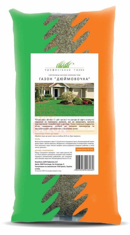 Травосуміш включає низькорослі сорти трав, що не вимагають частої стрижки і невибагливих у догляді. Газон зимостійкий, повільно відростає після скошування. Склад: вівсяниця червона Геральд - 60%, тонконіг луговий Собра - 40%.