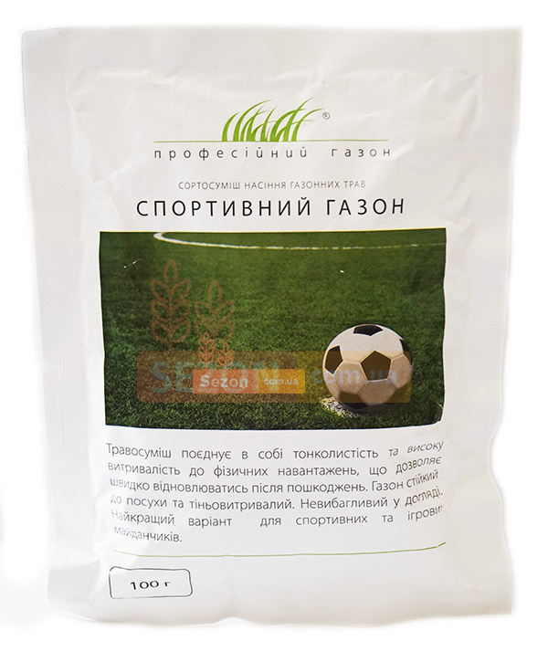 Трава газонна Спорт - травосумішка з високою стійкістю до витоптування та швидким відновленням. Має низький та щільний дерен. Засівають її на спортивних майданчиках, ігрових полях. Травосуміш стійка до посухи та зимостійка. Склад суміші: