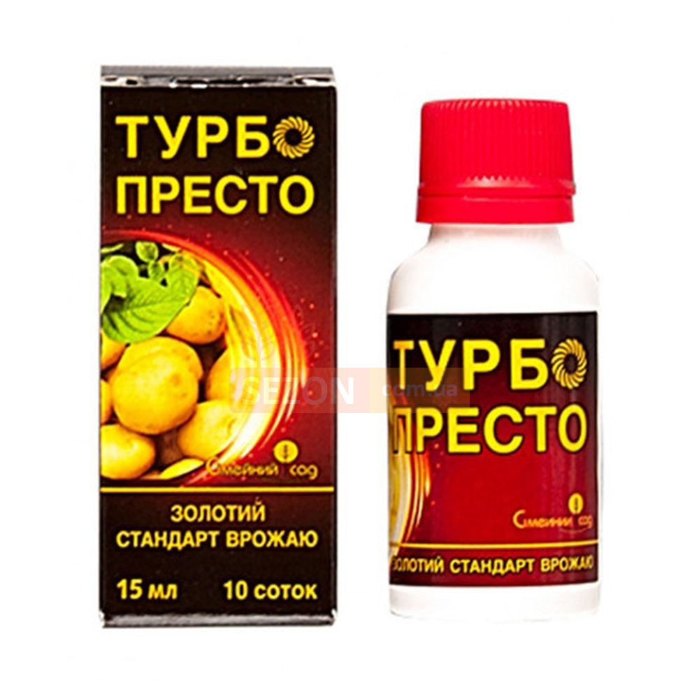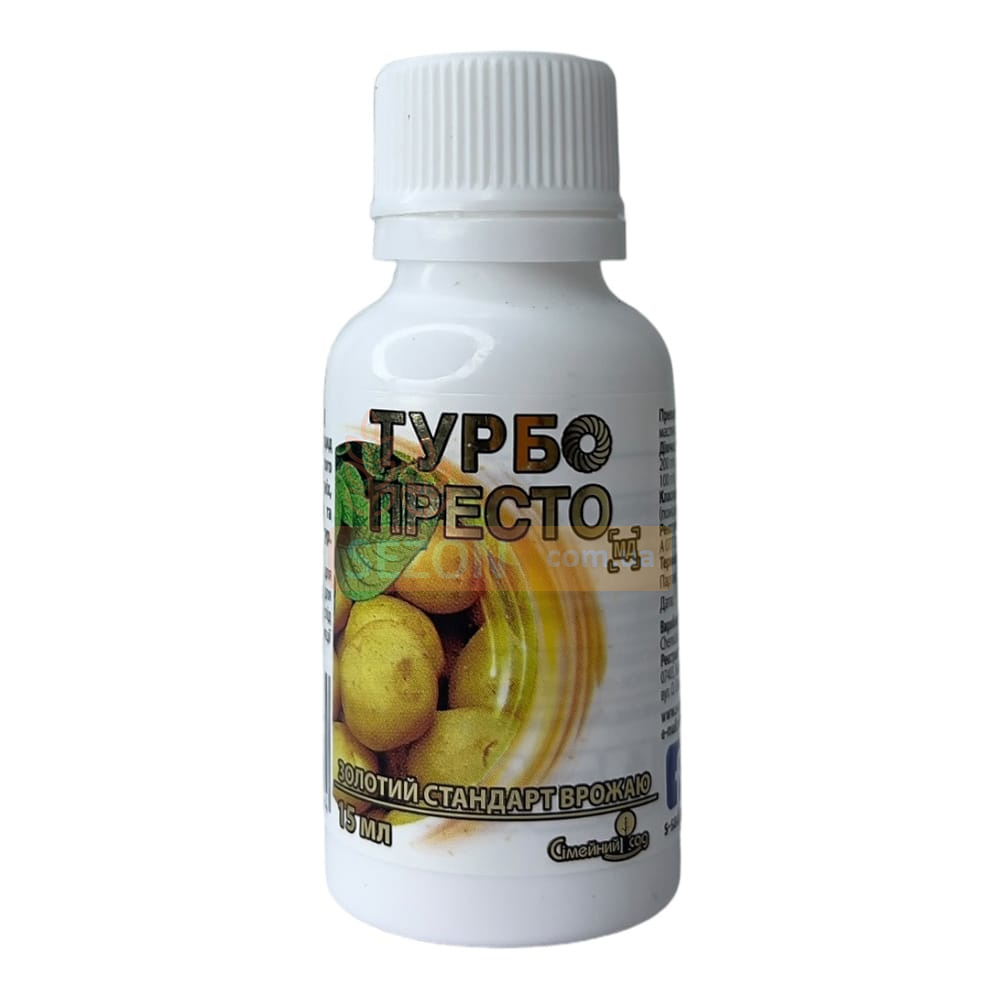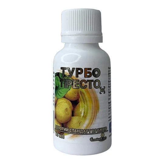 Інсектицид "Турбо Престо" забезпечує швидкий ефект, не ушкоджує культури та безпечний для навколишнього середовища. Цей засіб бореться з більш ніж 100 різними видами комах-шкідників, включаючи колорадського жука, попелицю та багато інших. Препарат захищає безліч культур, включаючи картопля, яблуні, персики, томати, огірки, баклажани, пшеницю, сорго, ріпак, морква, пастернак, селера, горох, дині, кавуни, виноград, цибуля, цукровий буряк, кукурудзу та овочі закритого ґрунту від різноманітних шкідників.