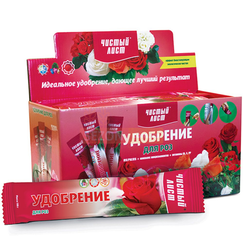 Добриво «ЧИСТИЙ ЛИСТ» розроблене спеціально для декоративних кущів троянд, яким необхідне повноцінне та регулярне живлення. Завдяки збалансованій формулі, що включає макро-, мезо- і мікроелементи, а також вітамінний комплекс, препарат сприяє пишному та тривалому цвітінню, прискорює ріст пагонів і зміцнює імунітет рослин.
