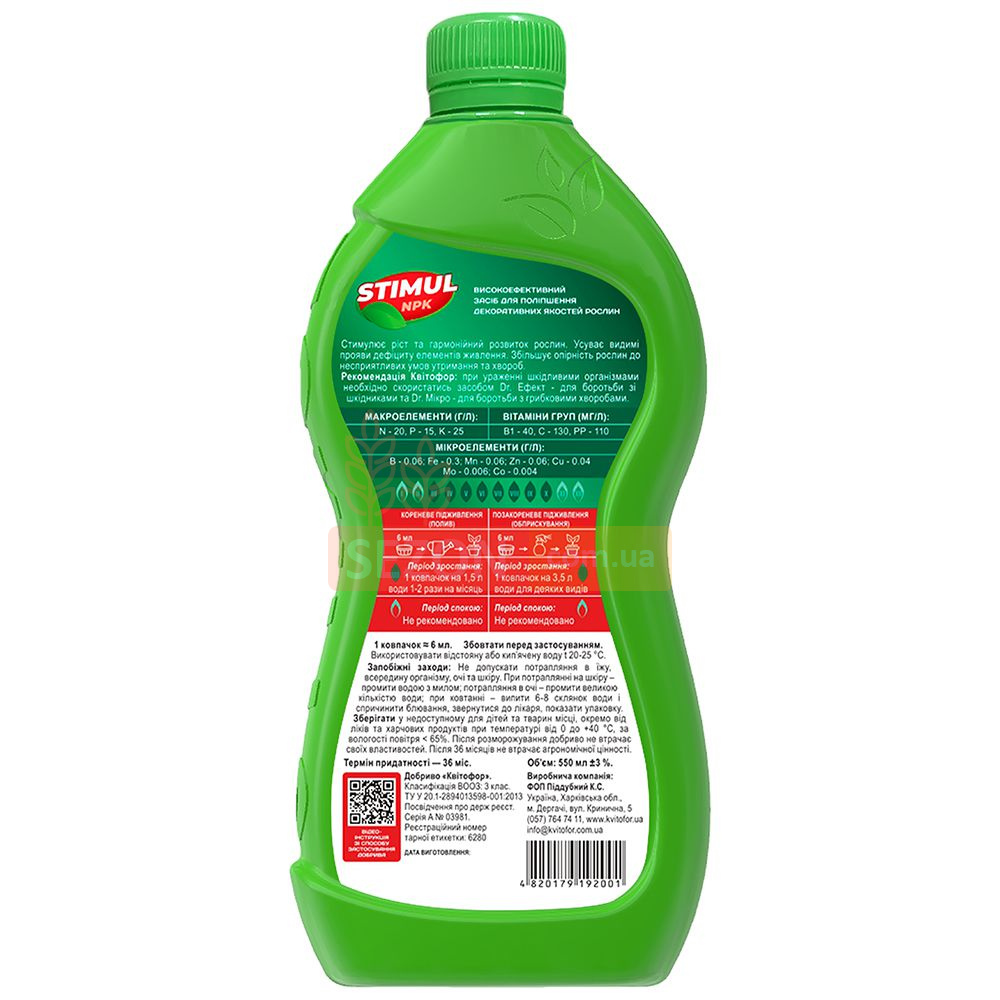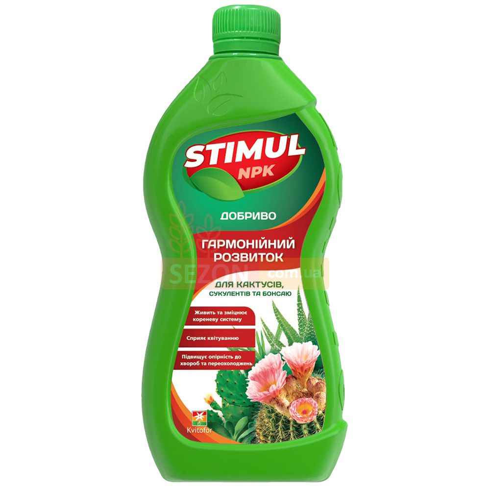 STIMUL-NPK — спеціалізоване рідке добриво, створене для декоративних і компактних рослин із повільним ростом. Підходить для кактусів, каланхое, бонсай і різноманітних видів сукулентів. Забезпечує збалансоване живлення, покращує зовнішній вигляд і підвищує стійкість рослин до несприятливих умов.