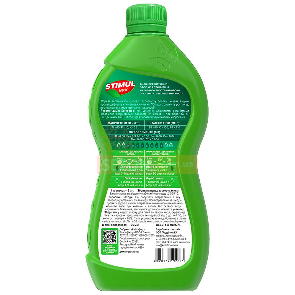 STIMUL-NPK — спеціалізоване добриво, призначене для догляду за декоративно-листяними рослинами з деревоподібною структурою, такими як пальми, фікуси, юки та драцени. Воно стимулює ріст крони, запобігає опаданню листя та сприяє гармонійному розвитку рослини в домашніх і офісних умовах.