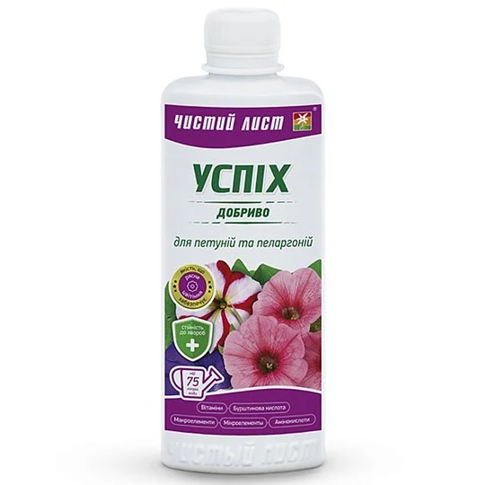 Добриво Успіх для петуній і пеларгоній — це зручне рішення для гармонійного росту й тривалого цвітіння декоративних рослин. Замовляйте його вже сьогодні та підтримуйте свої квіти з самого початку розвитку.