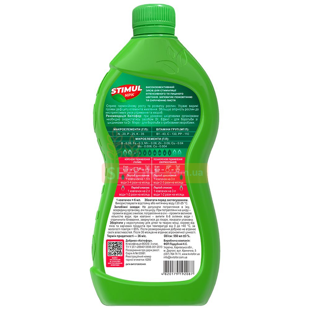 Макроелементи (г/л): N - 20, P2О5 - 25, K2О - 35