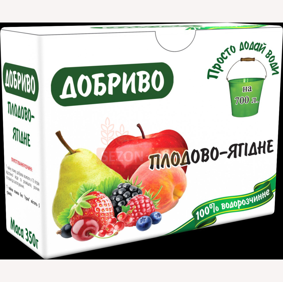 ПРИГОТУВАННЯ РОЗЧИНУ: 1 чайну ложку добрива розчинити в 10 літрах відстояної води і розмішати, розчин готовий до застосування.